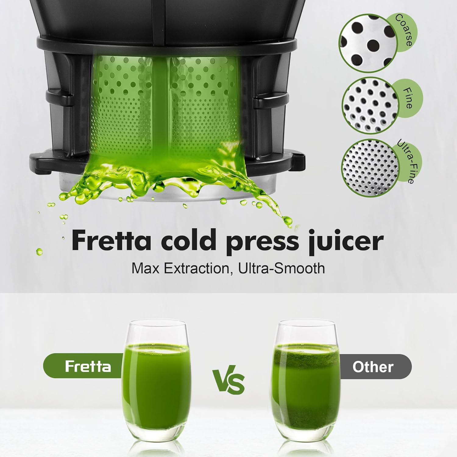 Fretta Boost F6000 Cold Press Juicer (250W, 5.3'' Wide Feed Chute, 1.8L Capacity)
