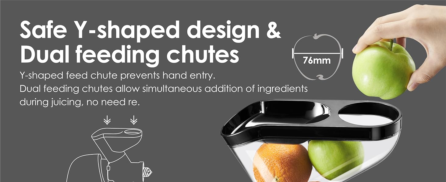 Y-Shaped dual feeding chute, safe & smooth ingredient feeding