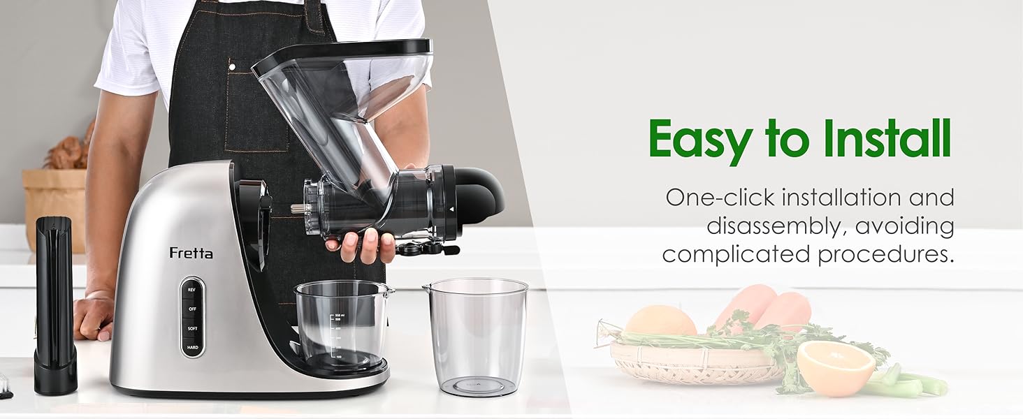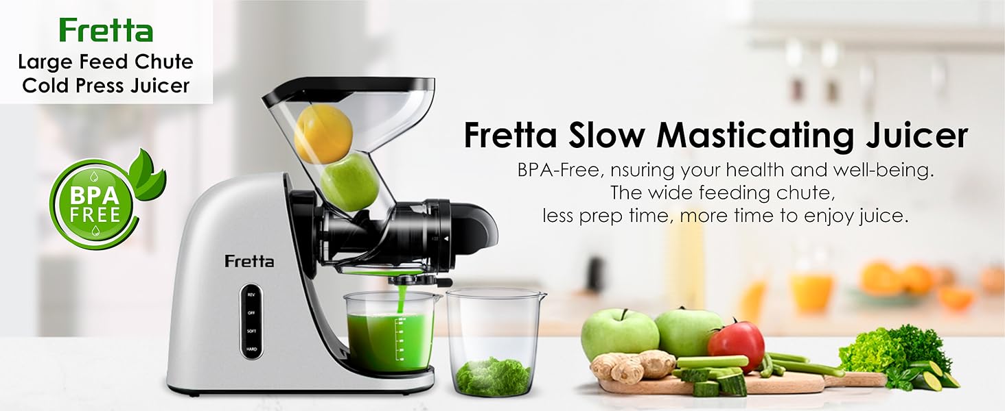 Fretta Edge Max F3000 Cold Press Juicer, Slow Masticating (200W, Tritan Material, Reverse Function, Y-Shape Dual Feed Chutes)