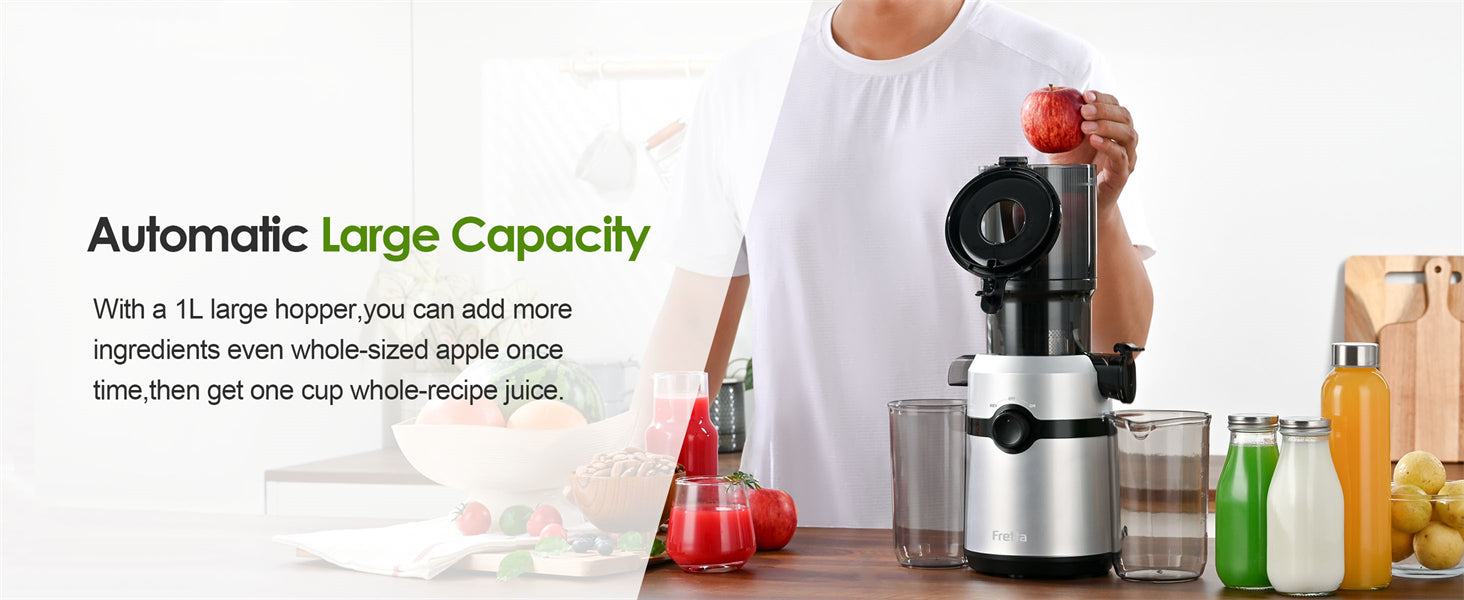 4.25'' large feeding chute, 1L capacity, fits whole fruits